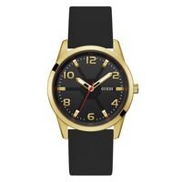 Montre Guess Monte Acier Inoxydable Argente Ronde Quartz 42mm Fond Noir Bracelet Silicone Noir Gw0805g1