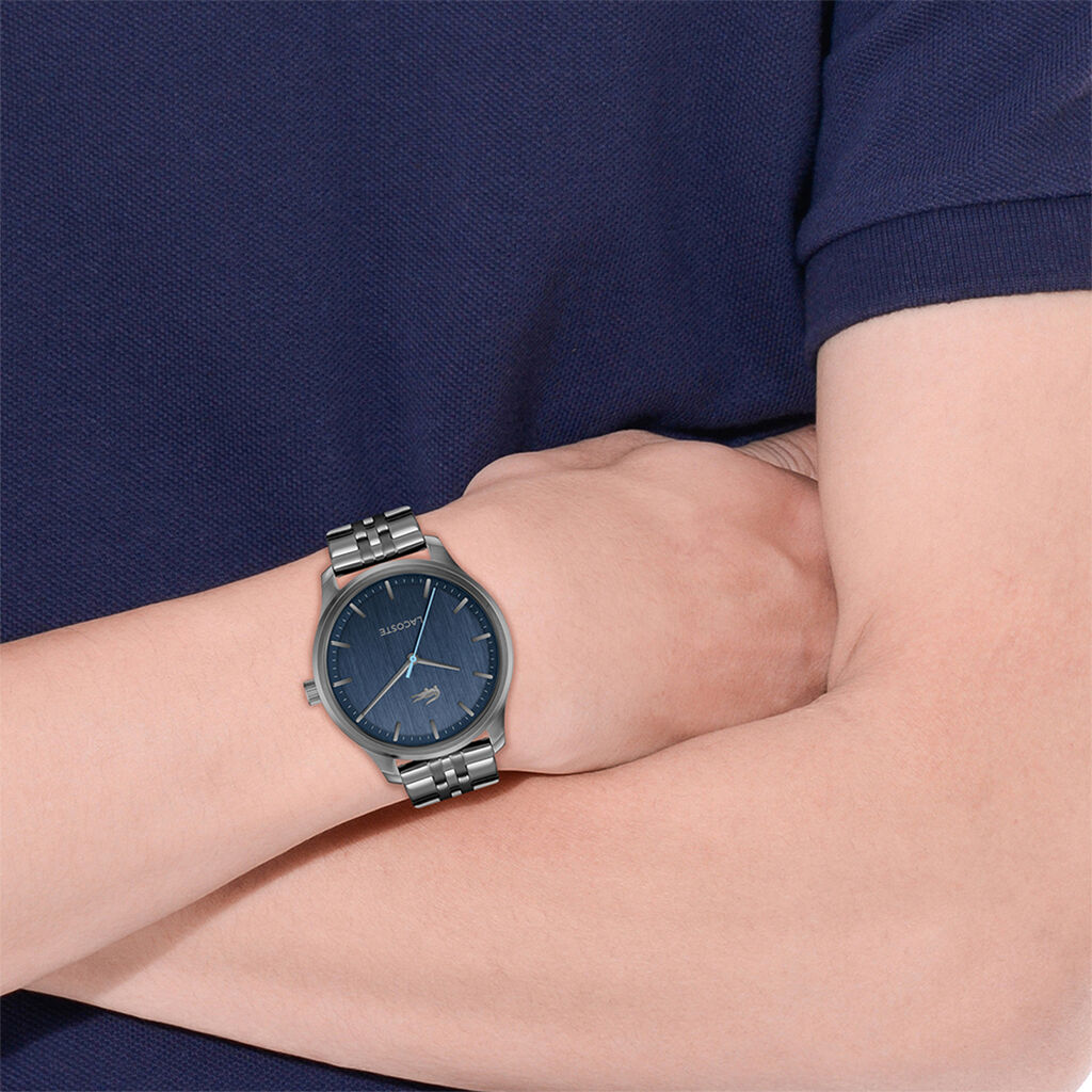Montre Lacoste Lisbon Acier Gris Ronde Quartz 42mm Fond Bleu Bracelet Acier Gris 2011371