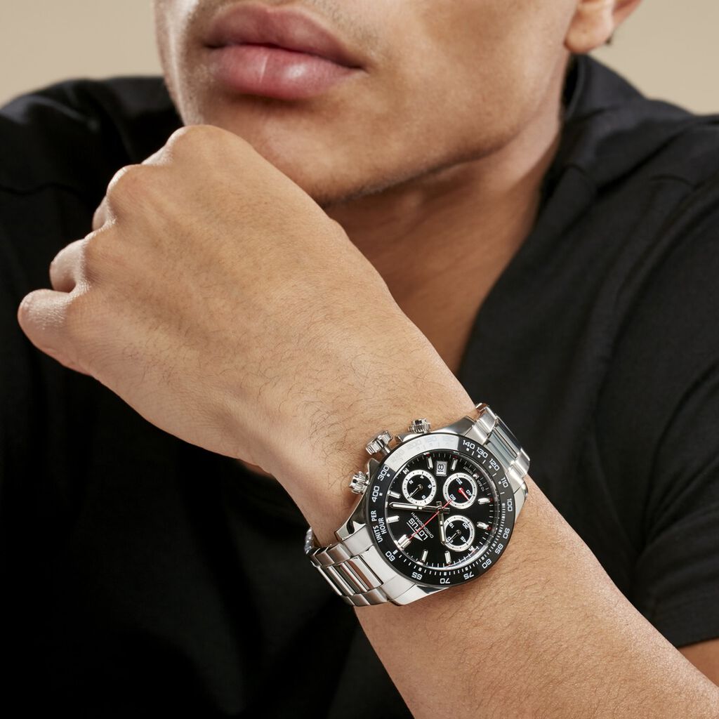 Montre Lotus Freedom Collection Acier Argente Ronde Quartz Chronographe 43.5mm Fond Noir Bracelet Acier Argente 18912/6