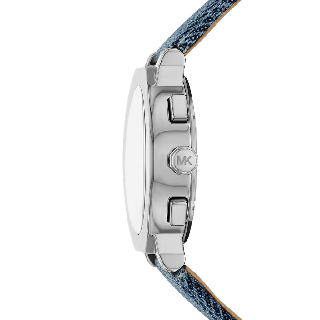 Montre Michael Kors Gramercy Acier Argente Ronde Quartz Chrono 40mm Fond Bleu Bracelet Jean Bleu Mk7524