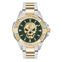 Montre Philipp Plein The $keleton Crystal Résine Vert Tonneau Automatique 44mm Squelette Motif Crane Fond Noir Index Vert Bracelet Résine Vert Pwpta0124