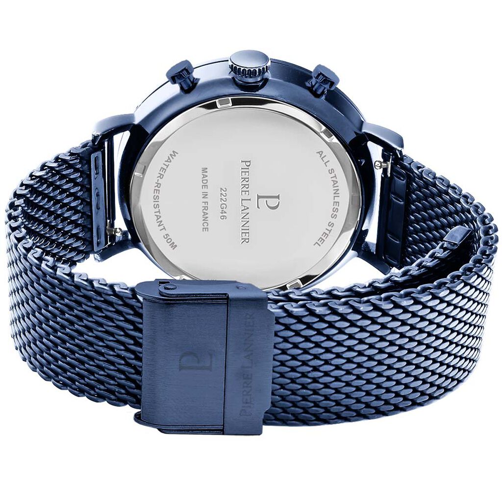 Montre Pierre Lannier Baron Acier Bleu Ronde Quartz Multifonction 43mm Fond Bleu Bracelet Acier Bleu Maille Milanaise 222g469