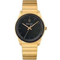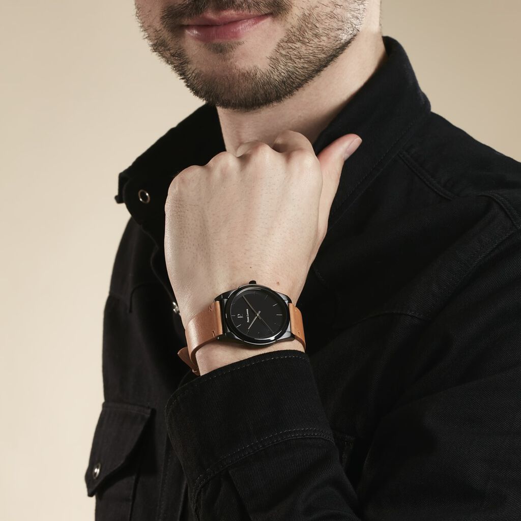 Montre Pierre Lannier Candide Acier Noir Ronde Quartz 38mm Fond Noir Bracelet Cuir Camel 214k434