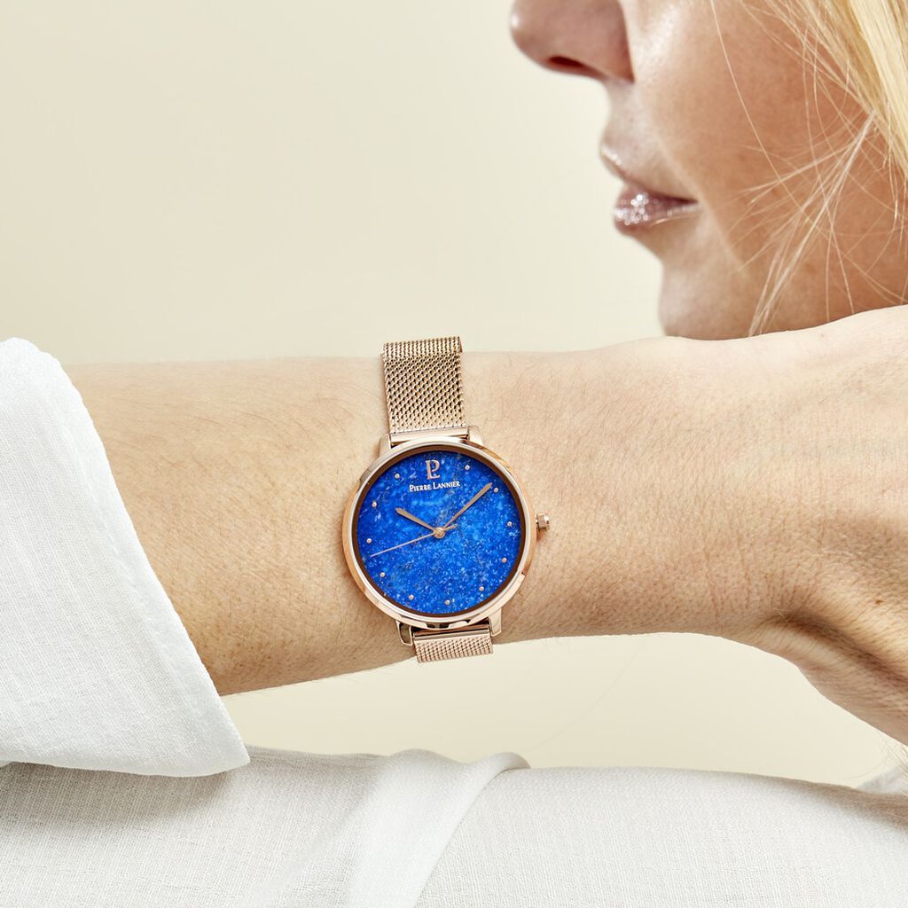 Montre Pierre Lannier Elara Acier Rose Ronde Quartz 35mm Fond Bleu Bracelet Acier Rose 028k968