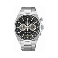 Montre Seiko Sport Titane Gris Ronde Quartz Chronographe 41.6mm Fond Noir Bracelet Silicone Noir Ssb393p1