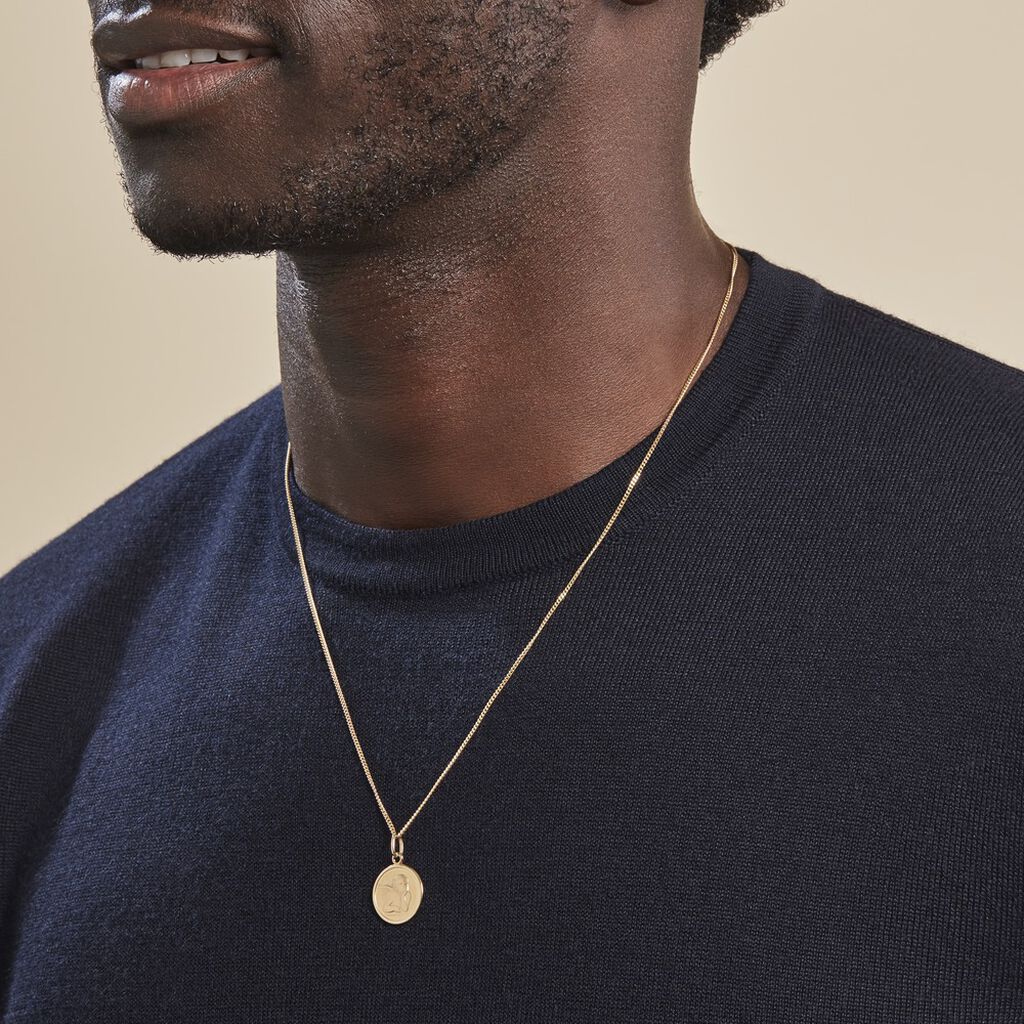 Pendentif Or Jaune 375/1000 Médaille Ronde Motif Ange Penseur Mat