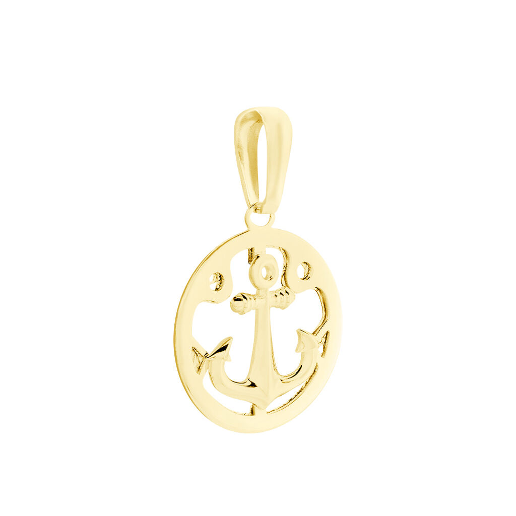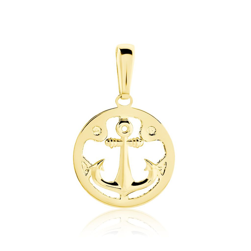 Pendentif Or Jaune 375/1000 Rond Motif Ancre Marine Ajoure 16mm