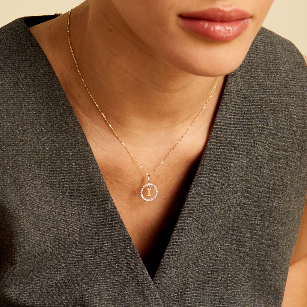 Pendentif Lettre I Or Jaune 375/1000 Entourage Oxyde De Zirconium Blanc