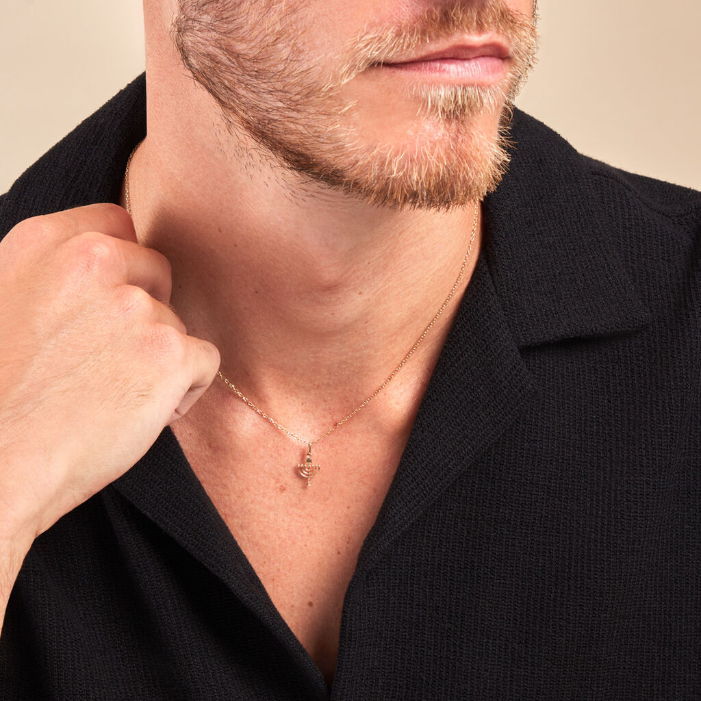 Pendentif Or Jaune 375/1000 Bougeoir Menorah Et Petite Etoile De David