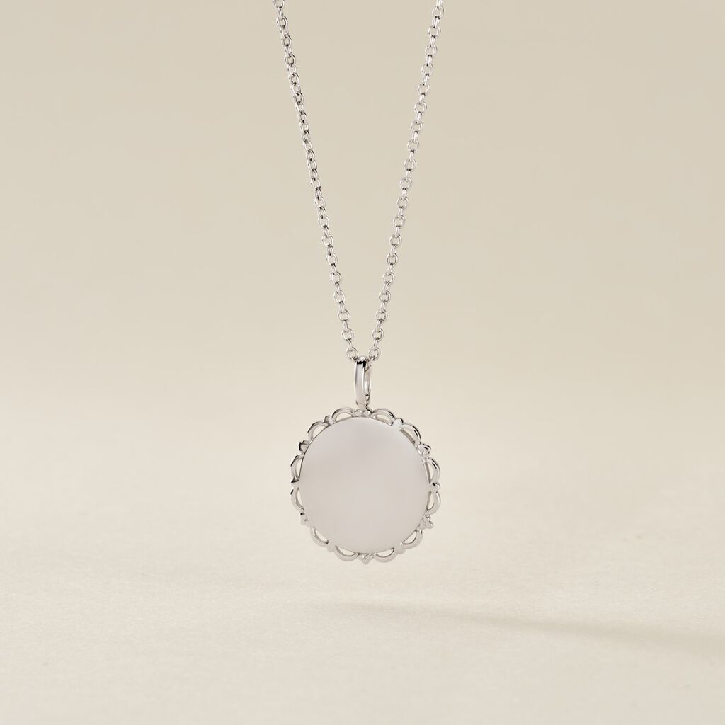 Pendentif Argent Blanc 925/1000 Médaille Ronde Dentelée Diamètre 15mm