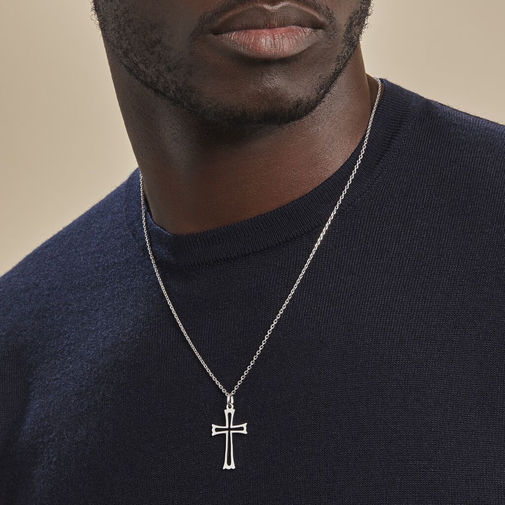 Pendentif Argent Blanc 925/1000 Croix Ajouree
