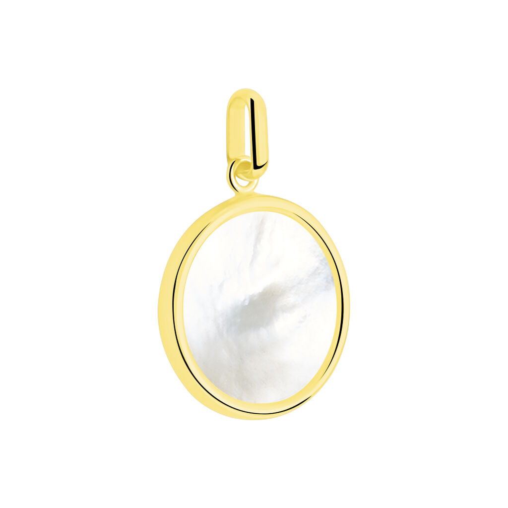 Pendentif Or Jaune 375/1000 Forme Ronde Lisse Nacre 1.95ct